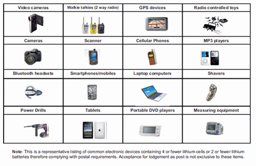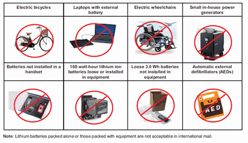 מותר לשלוח מכשירים עם בטריות ליתיום תקינות רק באם הם מחוברים למכשיר, למדינות המאשרות זאת.